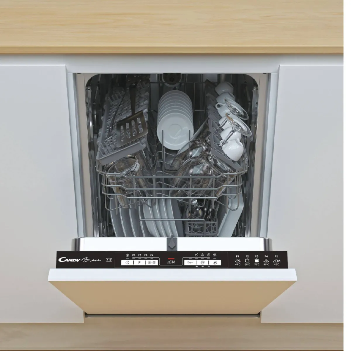 Moćna ugradna mašina za sudove tihog rada Efikasni brzi program ZOOM od 32 minuta Poseduje program za dodatno ispiranje ili osvežavanje sudova LED indikatori faze pranja Mogućnost odloženog starta za 3 h, 6 h ili 9 h