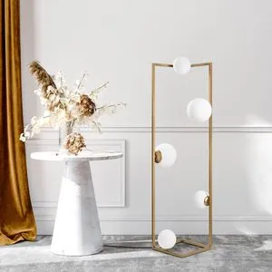 Opviq Kafes 13745 je elegantna podna lampa u zlatnoj boji koja pruža toplu i atmosferičnu rasvetu za vaš dom. Dizajnirana da bude funkcionalan dekorativni element, idealna je za postavljanje u dnevni boravak, spavaću sobu ili čitaonicu. Njen moderan stil savršeno se uklapa u različite enterijere, dodajući šarm i svetlost prostoru.