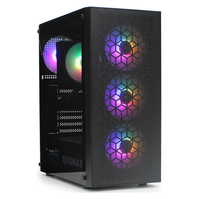 raidmax meshian x921 donosi prozračan mid-tower dizajn sa kaljenim staklom i uključenim 675 w napajanjem, spremnim za moderne konfiguracije. podržava atx/microatx/mini-itx ploče, duge grafičke do 340 mm i višestruke pozicije ventilatora/radijatora. rgb osvetljenje i garancija 24 meseca zaokružuju ponudu. odličan odnos vrednosti i pouzdanosti.