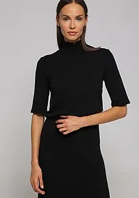 Elegantan crni top ukrašen cirkonima, idealan za svečane prilike ili večernje izlaske. Dizajniran da privuče pažnju, ovaj komad odeće dodaje šik notu svakom izgledu. Savršen izbor za žene koje traže stilsku i svečanu garderobu.
