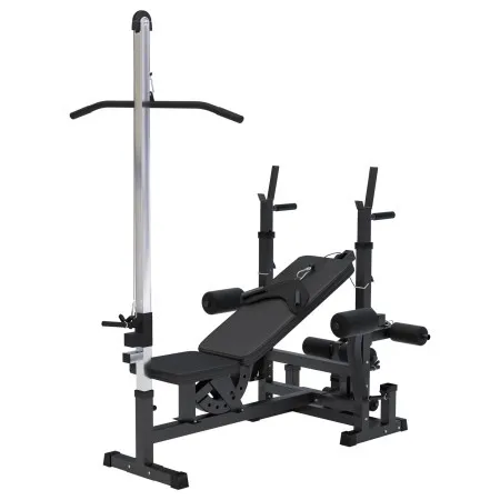 Ova univerzalna bench klupa iz kolekcije Gorilla Sports vam omogućava efikasne vežbe za celo telo. Obuhvata više sprava koje uspešno oblikuju i jačaju vašu muskulaturu i efikasno eliminišu višak kilograma. Multi Gym sprava za teretanu ili kućnu upotrebu sadrži, pored podesive benč klupe, još i stalak za dugu šipku sa ručkama za propadanja, skot klupu, dodatak za nožni pregib (Leg Curl) i mašinu za grudi (Pec Deck).