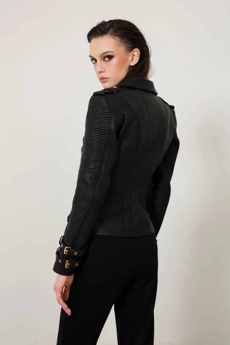 Pinko top bez rukava od materijala sa efektom kože. Komad uskog kroja sa okruglim izrezom, izrezom napred i metalnim patent zatvaračem. Šiljati prednji porub.Materijal: 100%POLIESTER,POSTAVA: 90%POLIESTER 10%ELASTIN, PRELIV: 100%POLIURETANBoja: Crna