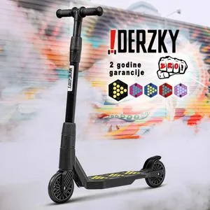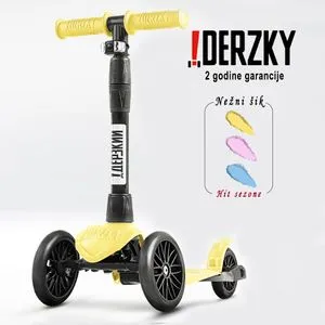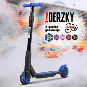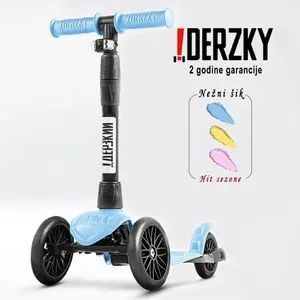 Derzky trotinet iz serije Baby Style namenjen je deci uzrasta od 1 do 5 godina. Izrađen od jedinstvenog polimernog okvira, ovaj proizvod je izuzetno lagan i izuzetno trajan, sa pastelno plavom bojom i crnim točkovima. Idealno rešenje za decu koja tek uče da voze, nudeći sigurnost i stilski dizajn.