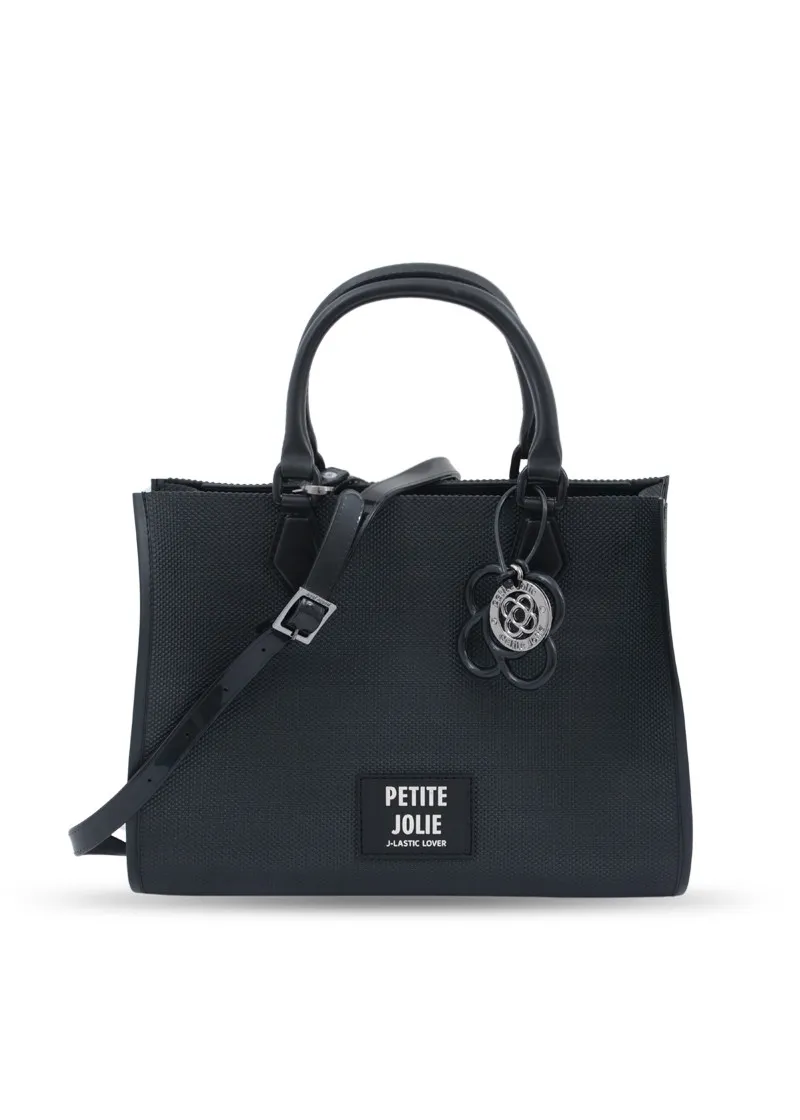 Ženska torba brenda Petite Jolie izrađena od veštačkog materijala u elegantnoj crnoj boji. Dizajnirana je sa istaknutim logo znakom, što je čini savršenim izborom za svakodnevnu upotrebu i pravljenje stila. Ova gumena torba pruža praktičnost uz moderan izgled.