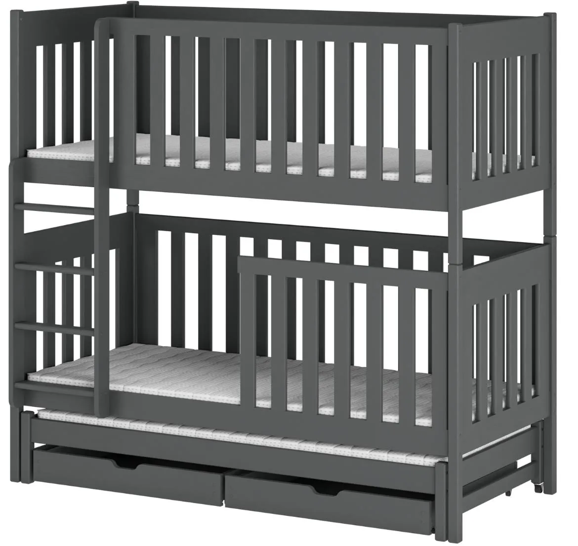 Ignas krevet na kat dimenzija 87x168x164 cm idealno rešenje za uštedu prostora u dečijoj sobi. Tamnosiva boja pruža moderan i elegantan izgled, dok čvrsta konstrukcija obezbeđuje sigurnost i udobnost za decu.