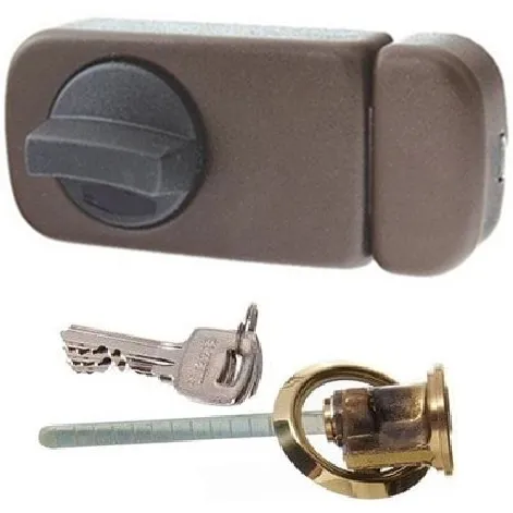 Dodatna brava za drvena vrata. Univerzalna leva/desna strana. Montira se na vrata iznutra. Boja: Bela U kompletu je i cilindar za zaključavanje spolja