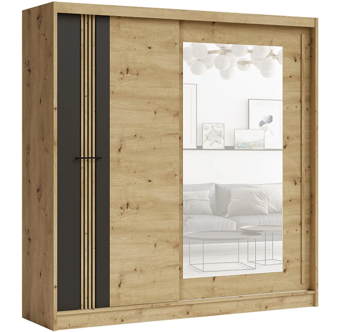 Vena klizni ormar sa tri vrata i integrisanim ogledalom pruža praktično rešenje za organizaciju odeće u spavaćoj sobi. Kombinacija bele boje i rustičnog drveta daje moderan i topli izgled, dok dimenzije od 200x59x205 cm omogućavaju maksimalnu iskoristivost prostora. Idealno rešenje za one koji traže funkcionalan i estetski privlačan nameštaj.