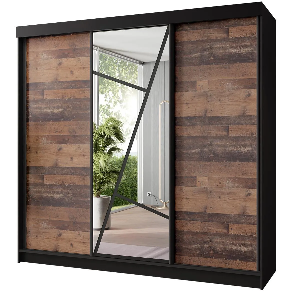 Vena Sliding Wardrobe 3 Doors with Mirror 200x59x205 cm, White/Rustic Wood